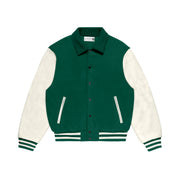 Green Wool/Cream Leather Collared Varsity Jacket – College Style Outerwear