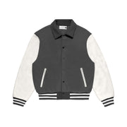 Grey Wool/White Leather Collared Varsity Jacket – College Style Outerwear