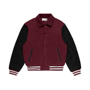 Maroon Wool/Black Leather Collared Varsity Jacket – College Style Outerwear