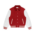 Red Wool/White Leather Collared Varsity Jacket – College Style Outerwear
