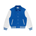 Royal Blue Wool/White Leather Collared Varsity Jacket – College Style Outerwear